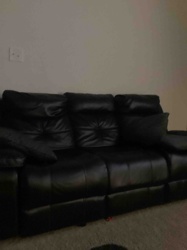 Modern Three-Seat Black Faux Leather Reclining Sofa