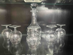 Vintage Wheel-Cut Floral Crystal Decanter and Goblet Set