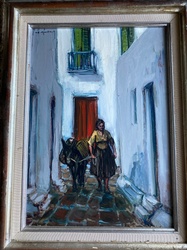Mediterranean Village Street Oil Painting