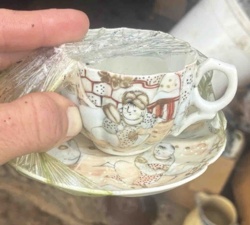 Japanese Satsuma Style Eggshell Porcelain Teacup and Saucer