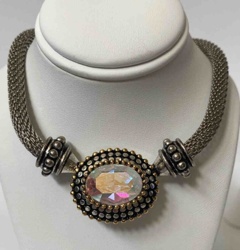 Vintage Mixed-Metal Mesh Collar Necklace with Aurora Borealis Crystal Centerpiece