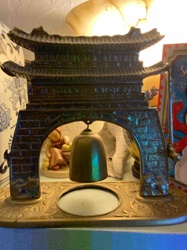 Vintage Cast Brass Pagoda Temple Bell Stand
