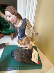 Spanish Colonial Polychrome and Gilt Carved Wood Saint Michael (San Miguel Arcángel) Figure
