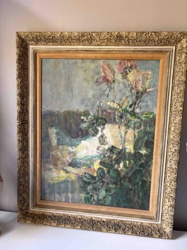 Mid-Century Impressionist Floral and Figure Oil Painting by Fabien (1965)