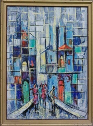 Mid-Century Abstract Figurative Street Scene Painting