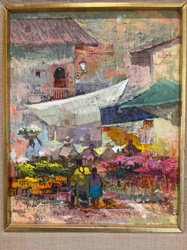 Mid-Century Modern Impressionistic Cityscape Oil Painting