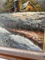 Mid-Century Tonalist Barn Landscape Painting by J. Wagner