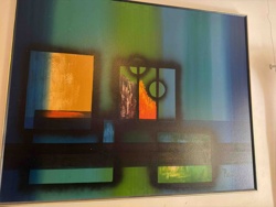 Mid-Century Modern Geometric Abstract Painting Signed 'Ruiz'
