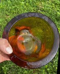 Mid-Century Modern Amber and Red Art Glass Bowl
