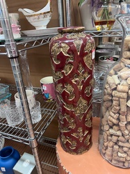 Mid-Century Modern Italian Red and Gold Sgraffito Ceramic Cilindrical Vase