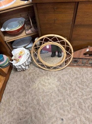 Mid-Century Modern Rattan Wiggle Sunflower Round Mirror