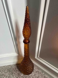 Mid-Century Modern Amber Hobnail Glass Decanter with Flame Stopper