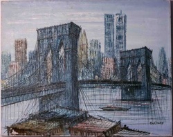 Mid-Century Impressionist Painting of Brooklyn Bridge and NYC Skyline by DuChamp