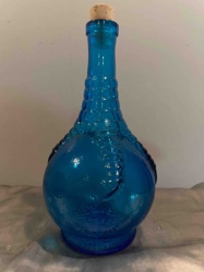 Miniature Blue Hand-Blown Glass Cruet with Stopper