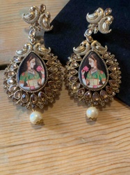 Indian Kundan-Style Miniature Painting Drop Earrings