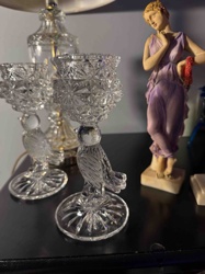 Pair of Faceted Clear Glass Taper Candlesticks