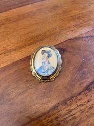 Victorian Style Hand-Painted Porcelain or Enamel Portrait Brooch