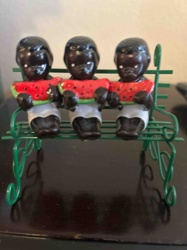 Vintage Black Americana Three Boys on Park Bench Ceramic Figurines