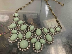 Mint Green Statement Bib Necklace with Rhinestone Accents
