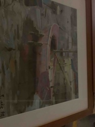 Framed Mixed Media Street Scene Painting