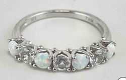 Sterling Silver Synthetic Opal and Cubic Zirconia Half-Eternity Band