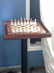 Modern Pedestal Chess Table with Glass Playing Pieces