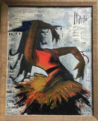 Mid-Century Modern Mixed Media Painting of a Dancer
