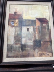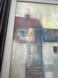 Mid-Century Modern Mixed Media Architectural Abstract Painting