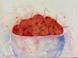 Contemporary Watercolor of Cherries in a Bowl