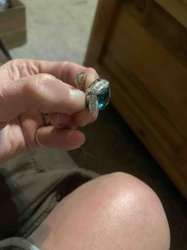 Modern White Metal Ring with Blue Stone and Rhinestone Accents