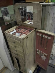 Vintage Freestanding Jewelry Armoire with Lift-Top Mirror