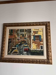 Framed Venetian Canal Scene Painting with Lighting Fixture