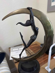 Art Deco Style Bronze and Brass Sculpture of a Nude Woman and Crescent Moon