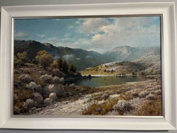 Framed Mountain Lake Landscape Painting
