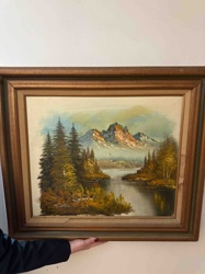 Take a clear photo of your Mountain Landscape Oil Painting Signed Postma 76 and upload it to our platform. One photo is all you need.