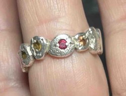 Artisanal Textured Silver Multi-Gemstone Eternity Band