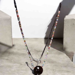 Faceted Black Spinel and Multicolored CZ Bead Necklace with Large Pendant