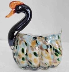 Murano-Style Multi-Color Splash Glass Swan Bowl