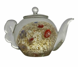 Murano Style Millefiori and Gold Fleck Art Glass Teapot Paperweight