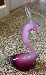 Murano Style Amethyst and Pink Sommerso Glass Swan Figurine