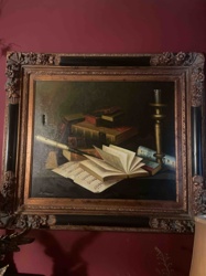Antiquarian Still Life Oil Painting with Books and Musical Scores