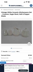 Vintage Faceted White Ceramic Creamer, Sugar Bowl, and Salt & Pepper Shaker Set