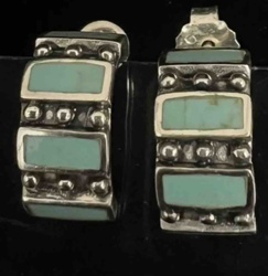Native American Sterling Silver and Turquoise Inlay Hoop Earrings