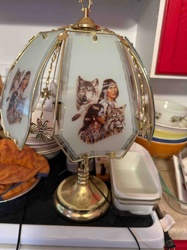 Vintage Native American and Wildlife Themed Glass Touch Lamp