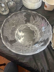 Clear Glass Serving Bowl with Leaf Design