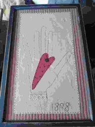 Framed Folk Art Hand Sampler with Heart and Lace
