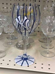 Hand-painted New York Yankees Wine Glass