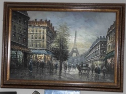 Eiffel Tower Scene Painting in Ornate Gold Frame