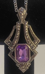 Art Deco Style Marcasite and Amethyst Paste Pendant