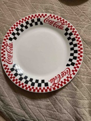 Vintage-Style Coca-Cola Checkered Border Ceramic Dinner Plate